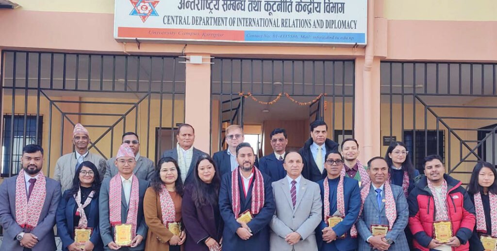 त्रिभुवन विश्वविद्यालयका रेक्टर प्रा.डा. खड्ग केसीको प्रमुख आतिथ्यतामा सम्पन्न कार्यक्रममा अन्तर्राष्ट्रिय सम्बन्ध तथा कूटनीति विषयमा उल्लेखनीय उपलब्धि हासिल गर्ने विद्यार्थीहरूलाई सम्मान गरिएको हो ।