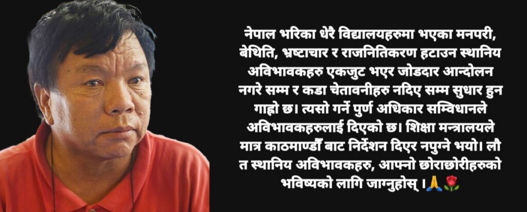 विद्यालय सुधार्न अभिभावकहरूलाई आन्दोलनमा उत्रन शिक्षामन्त्री पुनकाे आह्वान
