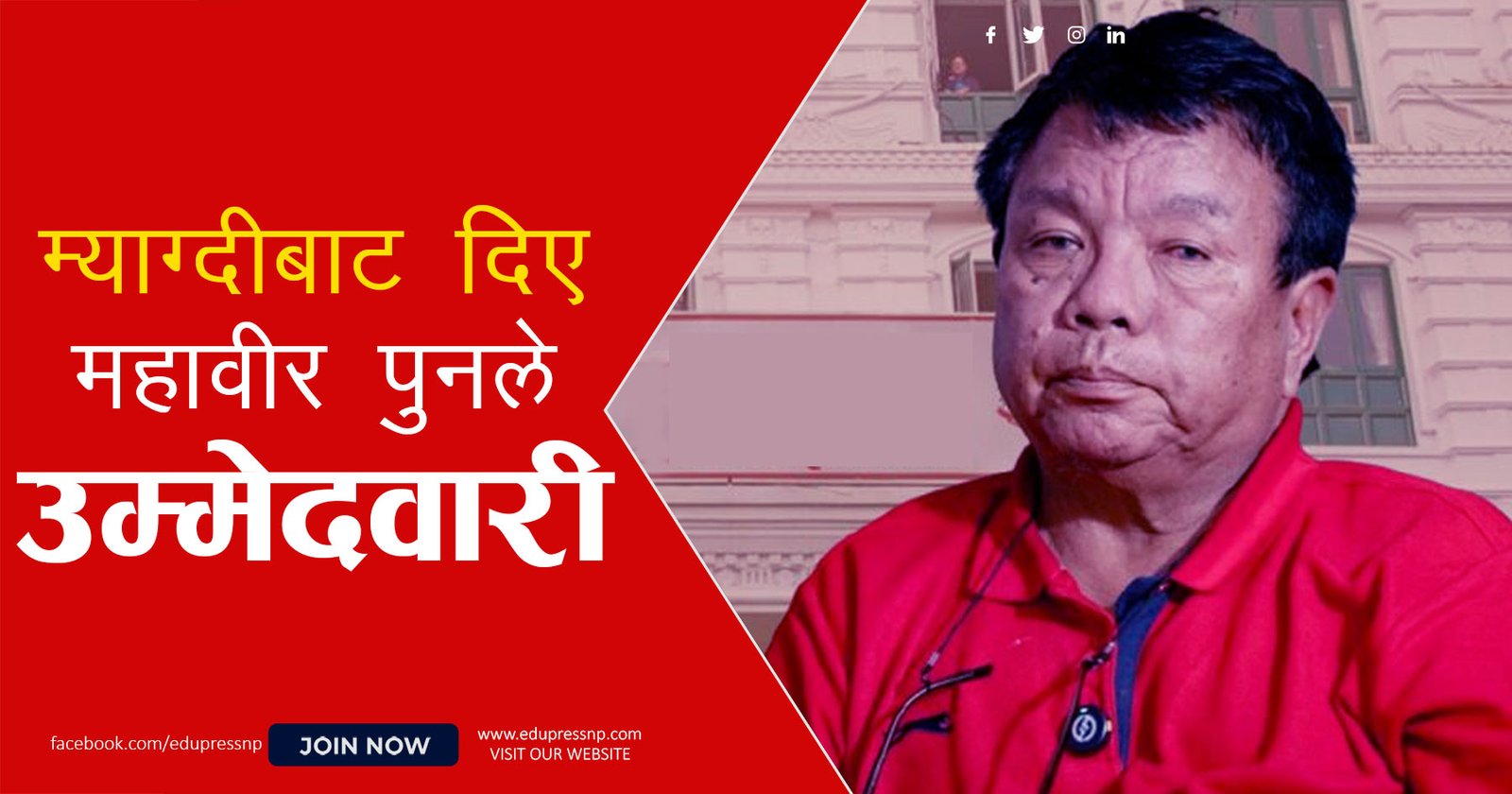 शिक्षामन्त्रीबाट राजिनामा दिएका महावीर पुनले म्याग्दीबाट दिए उम्मेदवारी