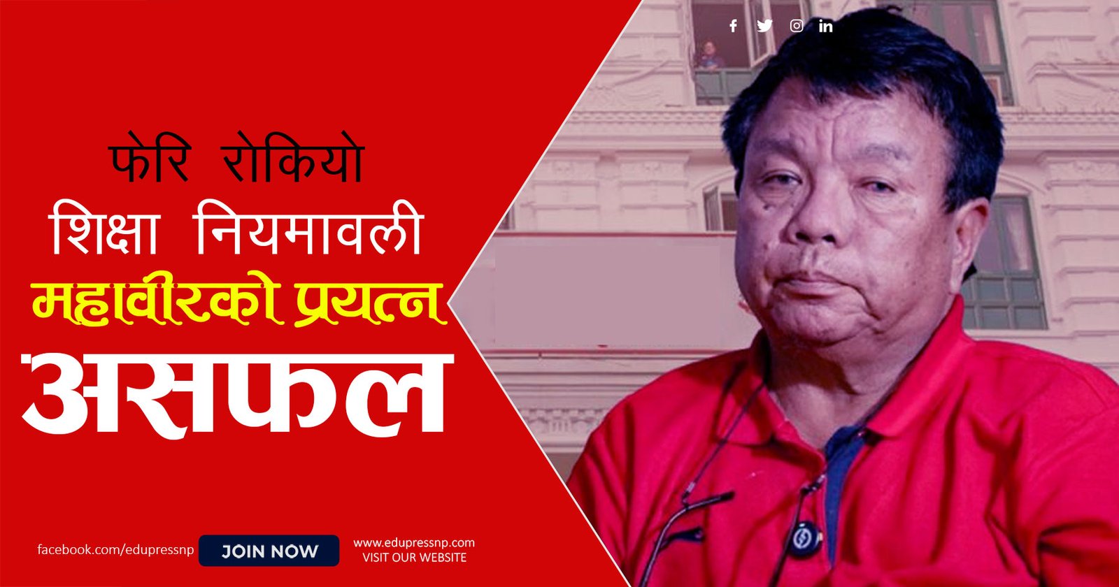 महावीर पुनको संघीय शिक्षासुधारको प्रयत्नमाथि चुनावी तगारो, शिक्षा नियमावली संशोधन फेरि रोकियो